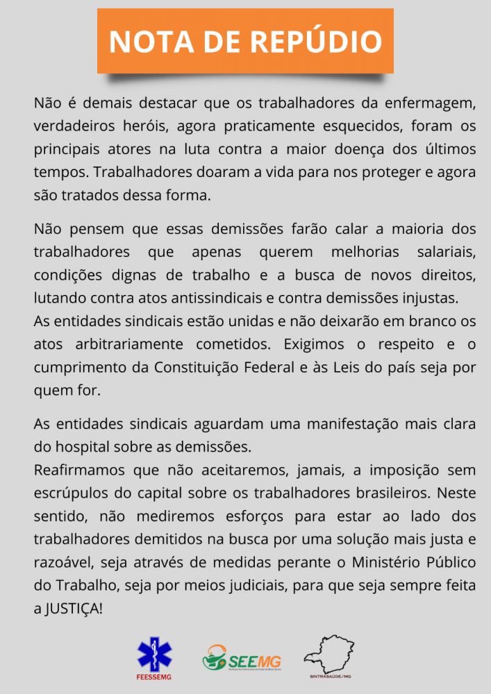 Reafirmamos que não aceitaremos, jamais, a imposição sem escrúpulos do capital sobre os trabalhadores brasileiros. Neste sentido, não mediremos esforços para estar ao lado dos trabalhadores demitidos na busca por uma solução mais justa e razoável, seja através de medidas perante o Ministério Público do Trabalho, seja por meios judiciais, para que seja sempre feita a JUSTIÇA!